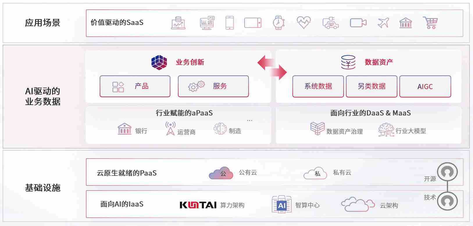 数字时代,,,,围绕企业数字化转型的关键要素,,广东会数码开创性的提出数云融合战略和技术体系框架,,,,着力在云原生、、数字原生、、、AI原生和信创产业上架构产品和服务能力,,,,为处在不同数字化转型阶段的快消零售、、、汽车、、、金融、、医疗、、、政企、、、教育、、、、运营商等行业客户提供泛在的敏捷IT能力和融合的数据驱动能力,,,构建跨界融合创新的数字业务场景和新业务模式,,,助力企业级客户建立面向未来的核心能力和竞争优势,,全面推动社会的数字化、、智能化转型升级。。。。